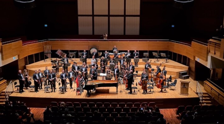 Özuslu, konser sonrasında orkestraya İzmir’in kurtuluşunun yüzüncü yılı dolayısıyla yapılan 100. Yıl Pulu’nu hediye etti.