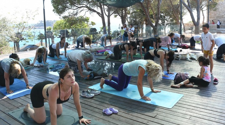 Kuşadası Belediyesi ve Kuşadası Kent Konseyi iş birliği ile 500 yıllık Güvercinada Kalesi’nde Dünya Yoga Günü dolayısıyla katılanların huzur bulduğu bir etkinlik düzenlendi. Güvercinada’nın manzarası eşliğinde sabahın erken saatlerinde güneşi selamlama ile başlayan etkinlikte katılımcılar ruhlarını dinlendirdi. Akşam saatlerine kadar devam eden etkinliğe yaklaşık 200 yoga sever katılım sağladı. Etkinlik boyunca belirlenen zaman dilimlerinde yoganın çeşitli branşlarında uzman antrenörler tarafından katılımcılara farklı dallarda yoga eğitimleri verildi. Derin düşünme ve mistik dans çalışmaları yapıldı.