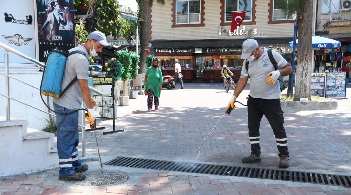 İlaçlama ekibinin son durağı yerli ve yabancı turistlerin en çok ziyaret ettiği noktaların başında gelen kent merkezindeki turistik çarşılar oldu. Bölgede bulunan rögarlar ve yağmur suyu kanallarında biyosidal ürünler kullanarak larvasit çalışması yapıldı. Sivrisineklere karşı ise termal sisleme cihazıyla ilaçlama gerçekleştirilerek çöp konteynerleri ve kutuları dezenfekte edildi. Ayrıca camilerdeki şadırvanlar ile park ve benzeri alanlardaki süs havuzları da ilaçlandı.