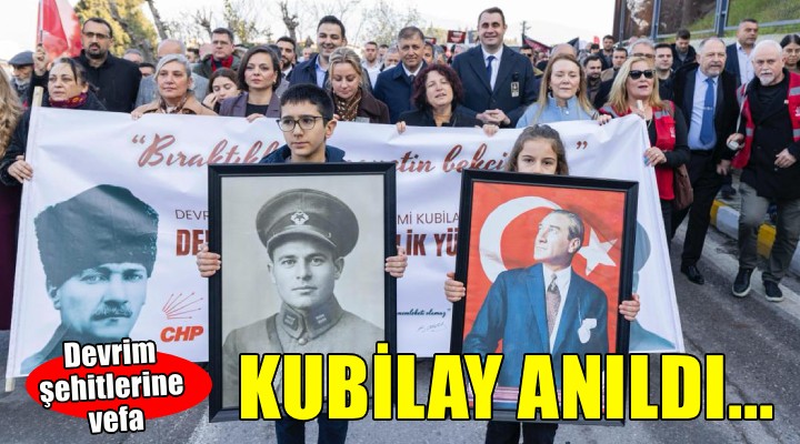 Türkü ERBİL/SONKALEİZMİR- Cumhuriyet Halk Partisi (CHP) İzmir İl Başkanlığı, cumhuriyet karşıtı gruplar tarafından katledilen devrim şehidi Fehmi Mustafa Kubilay, Bekçi Hasan ve Bekçi Şevki'yi, vefatlarının 95. yılında Menemen'deki şehitlikte andı. Anma törenine; İzmir Büyükşehir Belediye Başkanı Cemil Tugay, CHP İzmir İl Başkanı Çağatay Güç, CHP İzmir Milletvekili Seda Kaya Ösen, CHP Gençlik Kolları Başkanı Cem Aydın, CHP İzmir Gençlik Kolları Başkanı Ruhsar Selis Çelik, ilçe belediye başkanları, ilçe başkanları, Atatürkçü Düşünce Derneği (ADD) Hüsnü Bozkurt yer aldı.
