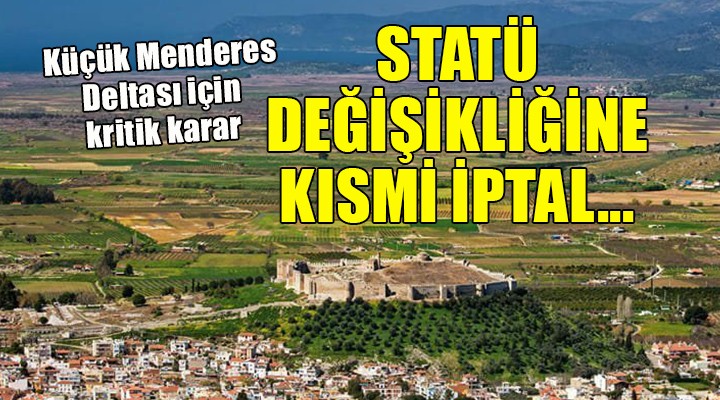 SONKALEİZMİR-Selçuk Küçük Menderes Deltası Doğal Sit alanlarındaki statü değişikliklerine ilişkin açılan davada kısmi iptal kararı verildi. TMMOB Şehir Plancıları Odası İzmir Şubesi, Efes Çevre Doğa ve Kültür Derneği ve Ege Çevre ve Kültür Platformu Derneği tarafından yapılan ortak açıklamada, 'Sürdürülebilir Koruma ve Kontrollü Kullanım Alanları' koruma statüsü ile esas amacın sit alanlarının korunması olmadığı vurgulandı. Yazılı açıklama şöyle: