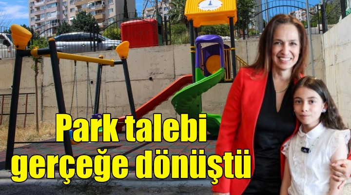 Arkadaşları için bir park yapılmasını talep eden Esma’ya “Bu güzel istek için teşekkür ederiz. Park alanına baktıracağım, gerekeni yapacağız” yanıtını veren Ünsal, kısa süre içinde ekiplerini harekete geçirdi. İzmir Büyükşehir Belediyesi’nin katkılarıyla okul alanına yapılan parka çocuklar için renkli oyuncaklar konuldu, zemini kauçuk ile döşenerek sağlıklı ve güvenli hale getirildi. Geçtiğimiz haftalarda kullanıma sunulan park, yaz tatili öncesinde minikleri sevindirdi.