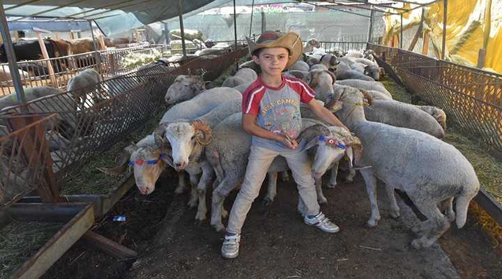 Yaklaşan Kurban Bayramı öncesi çiftlik ve hayvan pazarlarında kurban satışları başladı. Üreticiler bayrama sayılı günler kala hazırlıklarını hızlandırırken, binlerce vatandaş da kurbanlık almak için hayvan pazarlarının yolunu tuttu. İzmir'in Konak ilçesi Yeşildere Semti'nde kurulan hayvan pazarında ise eğitim öğretimine yaz tatili için ara veren 10-17 yaş aralığındaki çocuklar, tatillerini hayvancılıkla uğraşan ailelerine yardım ederek geçiriyor. Bir yandan hayvanlarla vakit geçirip eğlenen çocuklar, diğer yandan hayvanları samanlarla besliyor, altlarını temizliyor ve kıllarını fırçalıyor. Aynı zamanda da kazanç sağlamayı öğrenen çocuklar, hayvanların fiyatlarını ezberliyor ve gelen müşterilere de yardımcı oluyor. Aydın'dan hayvan pazarı için ailesiyle İzmir'e gelen Ramazan Burak Özdemir, "3 senedir ailemle birlikte kurban pazarına geliyorum. Kovboy şapkamı takıyorum elime bir sopa alıyorum ve onlarla oynayıp onları temizliyorum. Burada çok sayıda arkadaşım da var. Normalde 5'inci sınıf öğrencisiyim kışın okuluma da devam ediyorum" dedi.