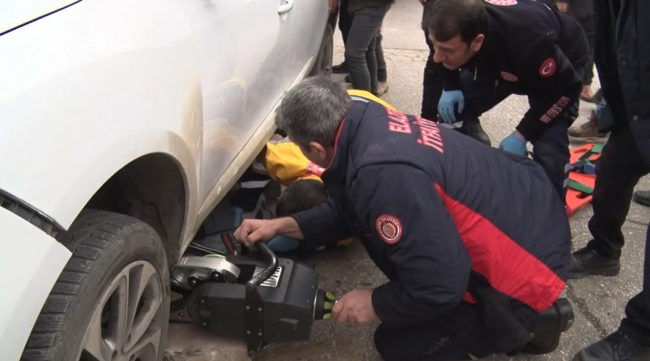 Otomobilin altında kalan kurye A.A., ağır yaralandı. İhbarla olay yerine sağlık, polis ve itfaiye ekipleri sevk edildi.