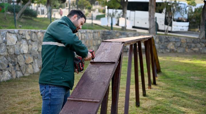 Kuşadası Belediyesi Park ve Bahçeler Müdürlüğü ekipleri, farklı mahallelerde yıl boyunca eş zamanlı olarak bakım, onarım ve yenileme çalışmaları yürütüyor. Çocuk parklarındaki kent mobilyaları, oyun grupları ve yeşil alanların belirlenen program dâhilinde düzenli olarak bakımını yapan ekipler bir yandan da evcil hayvanlar için daha sağlıklı yaşam alanları oluşturmak amacıyla kente kazandırılan köpek eğitim parklarını da unutmuyor.