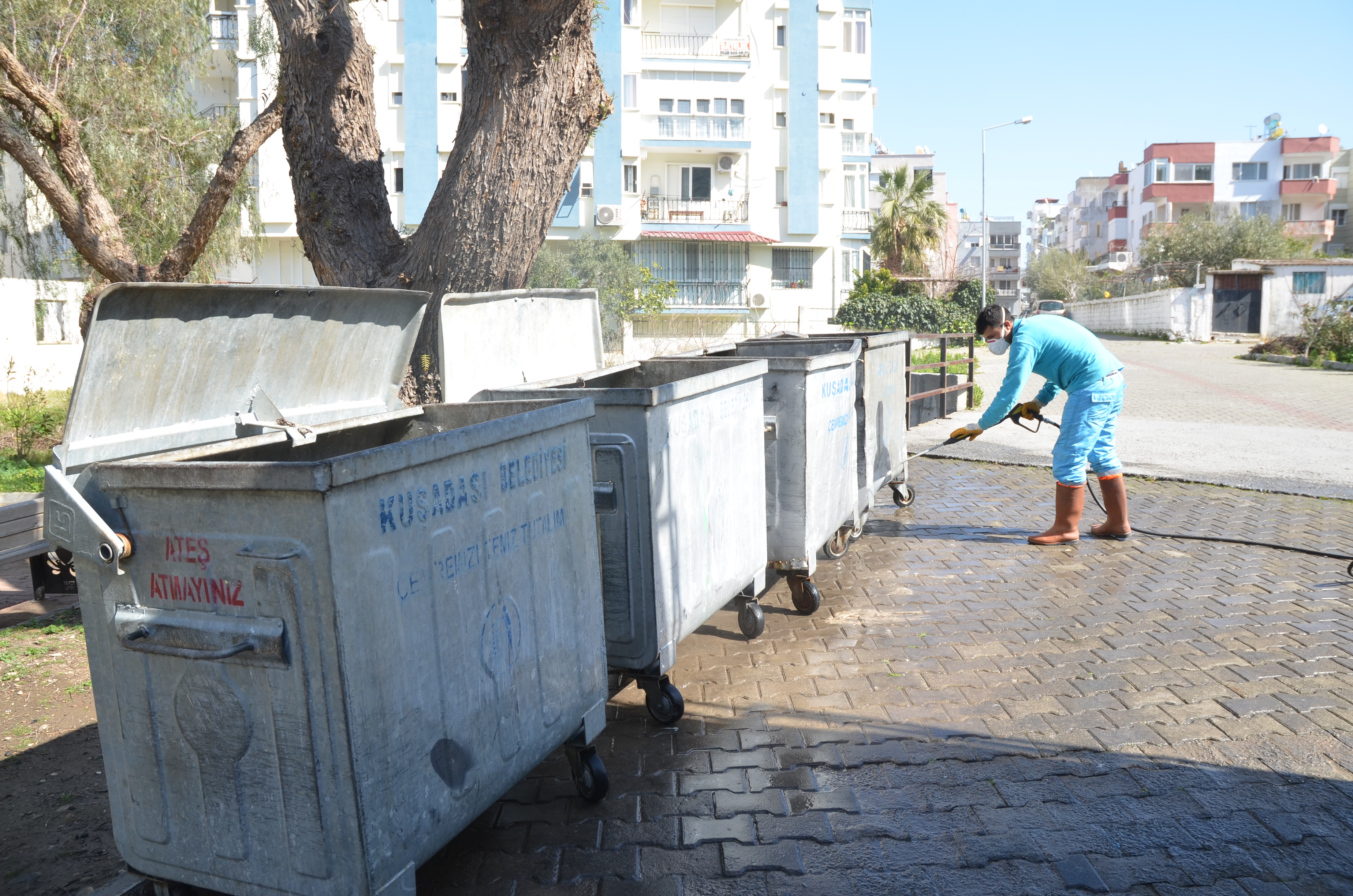 “Daha temiz bir Kuşadası” hedefiyle kentin 23 mahallesinde 7/24 mesai yapan Kuşadası Belediyesi Temizlik İşleri Müdürlüğü ekipleri, bir yandan rutin temizlik faaliyetlerini aksatmadan yerine getirirken bir yandan da dezenfeksiyon çalışmalarına devam ediyor.
