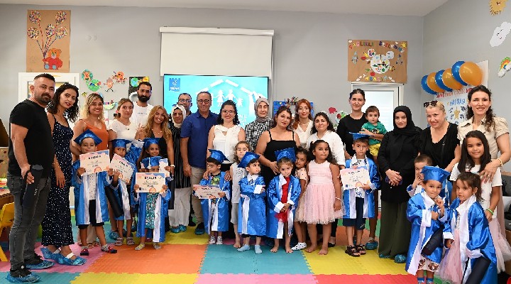 Kuşadası Belediyesi tarafından çocukların kişisel gelişimlerine ve ebeveynlerin bilinçlenme sürecine katkıda bulunmak amacıyla hizmete açılan 'Anne-Baba Çocuk Merkezi'nde' okul öncesi öğrenimi gören çocuklar, 16. kez mezuniyet heyecanı yaşadı. Merkezde uzman eğitmenler tarafından 3-6 yaş arasındaki çocuklara yönelik verilen okul öncesi eğitim programına katılan 15 çocuk için sembolik bir mezuniyet töreni düzenlenerek katılan miniklere sertifika verildi.