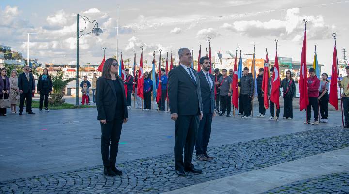Türkiye Cumhuriyeti’nin kurucusu Gazi Mustafa Kemal Atatürk’ün ‘Başöğretmenlik’ unvanını kabul edişinin yıl dönümü olan 24 Kasım Öğretmenler Günü’nde, Kuşadası’nda anlamlı etkinlikler düzenlendi. Program kapsamında ilk olarak çelenk sunma töreni gerçekleştirildi. İlçe Milli Eğitim Müdürü İbrahim Ataman’ın Atatürk Anıtı'na çelenk sunmasıyla başlayan tören, saygı duruşunun ardından İstiklal Marşı’nın okunmasıyla sona erdi.