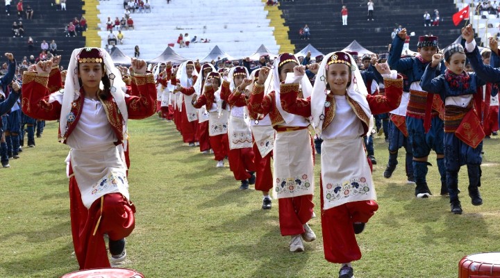Kuşadalıların yoğun ilgi gösterdiği kutlama programına, Rahime Bilici, İkiçeşmelik, Cumhuriyet ve Kirazlı Selim Eren ilkokullarında öğrenim gören 700 öğrencinin aynı anda oynadığı zeybek gösterisi damga vurdu. Kostümleri ve zeybek oynarken uyumlarıyla dikkat çeken öğrenciler, Özer Türk Stadı'nı dolduran Kuşadalılar tarafından büyük beğeni topladı. Gösteri sonunda ellerinde Türk bayraklarıyla resmi geçit törenine katılan öğrenciler ayakta alkışlandı.
