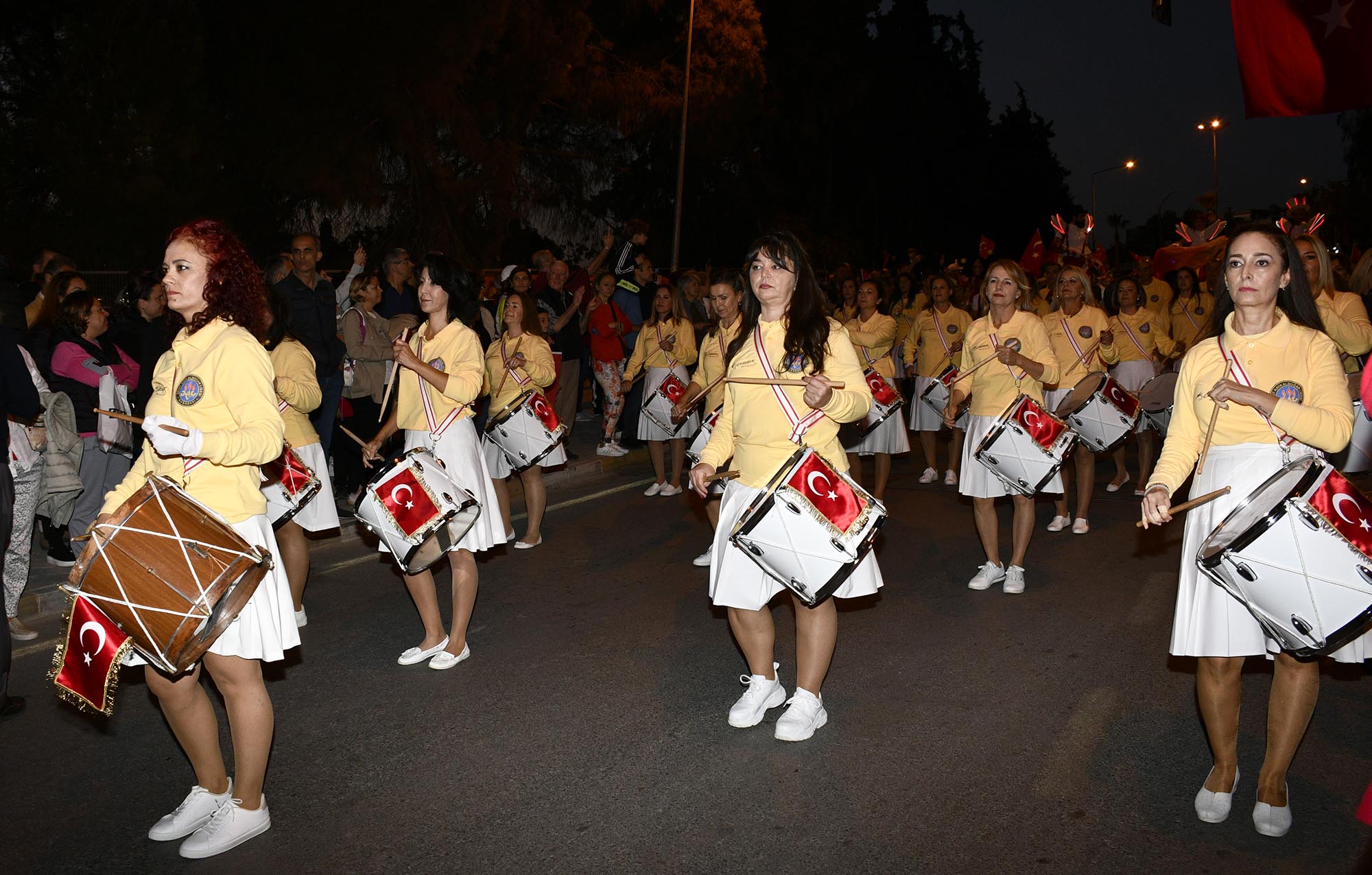 Kutlamaların akşamki programı ise saat 18.45’te Kısmet Otel Kavşağı'ndan başlayan Cumhuriyet korteji ve fener alayı ile devam etti. Kuşadası Belediyesi tarafından Cumhuriyet'in kuruluşunun 99’uncu yılı nedeniyle düzenlenen korteje 10 binlerce kişi katıldı. Yürüyüşte vatandaşlar ellerinde Türk Bayrağı, Atatürk posterleri ve meşaleler taşıyarak hep bir ağızdan marşlar söyledi. Atatürk Bulvarı üzerinden İsmail Cem Barış ve Dostluk Meydanı'na yürüyen korteje Kuşadası Belediye Başkanı Ömer Günel ailesi ile birlikte eşlik etti. Kuşadası Belediye Başkan Yardımcıları, Kuşadası Belediye Meclis üyeleri, CHP Kuşadası İlçe Örgütü, İYİ Parti Kuşadası İlçe Başkanlığı, dernekler ve sivil toplum kuruluşlarının da katıldığı kortejde ön bölümde yer alan motosikletliler, Kuşadası Belediye Bandosu, Kuşadası Şehit Kaya Aldoğan Lisesi mezunlarının oluşturduğu Veteran Bandosu ve jonglör gösterileri büyük ilgi gördü. Yaklaşık 5 kilometrelik bir uzunluğa erişen kortejin yürüyüşünü tamamlaması 1 saat sürdü.