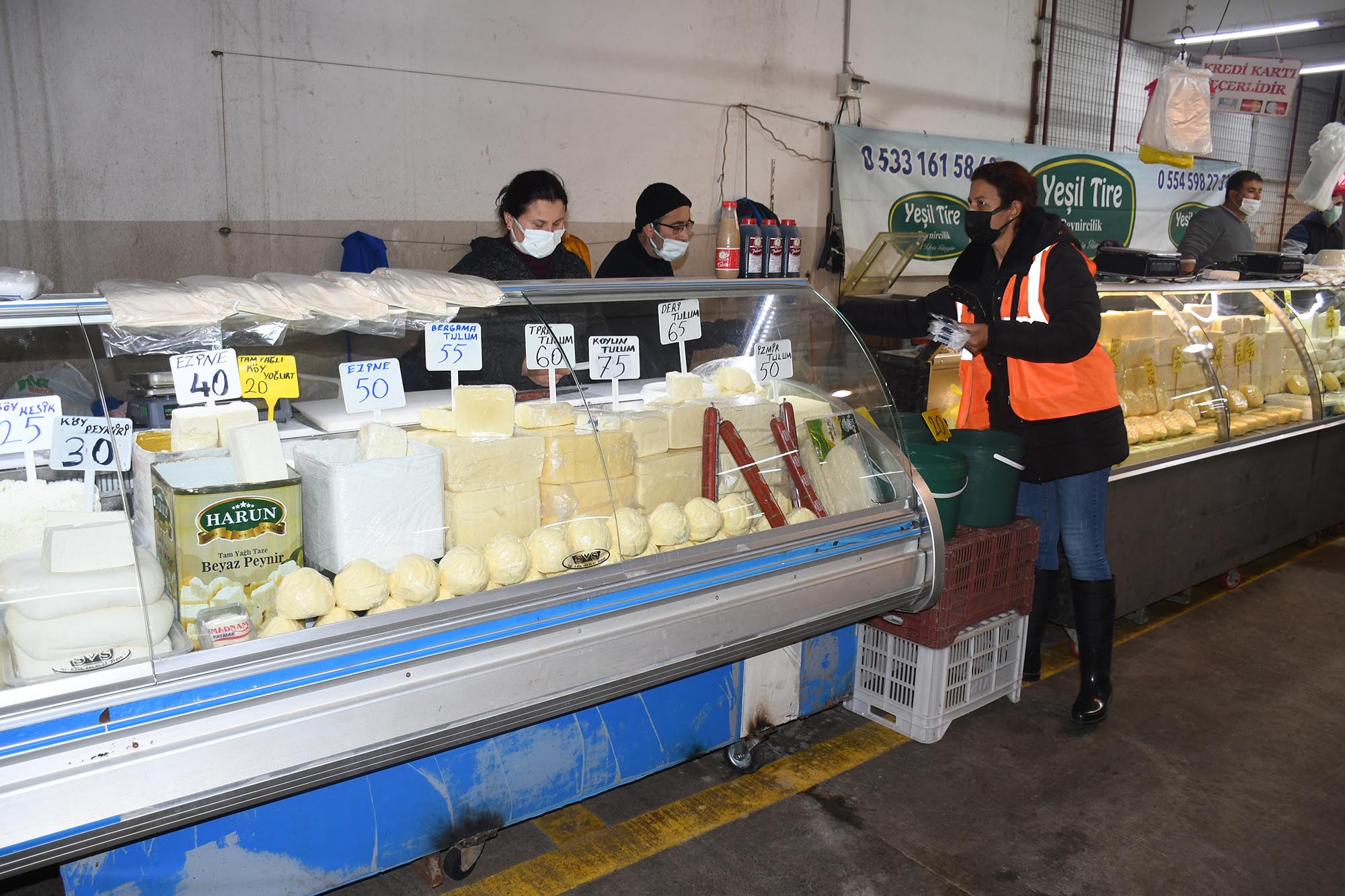 Kuşadası Belediyesi Sağlık İşleri Müdürlüğü ve Zabıta Müdürlüğü’ne bağlı ekipler ilçede bulunan pazar yerlerinde gıda ürünü satan esnafa yönelik gerçekleştirdikleri denetimleri sıklaştırdı. Zabıta ve Sağlık İşleri Müdürlükleri’ne bağlı ekipler son olarak kent merkezindeki kapalı pazar yerinde bir denetim yaptı. Denetimde süt ve peynir ürünleri, yumurta ve beyaz et satışı yapan pazarcılara uyulması gereken gıda mevzuatı hakkında bilgi verildi. Koronavirüs tedbirleri kapsamında esnafın ve pazara alışveriş yapmaya gelen vatandaşların HES kodlarına bakılarak maskelerini takmaları ve sosyal mesafe kuralına uymaları istendi.