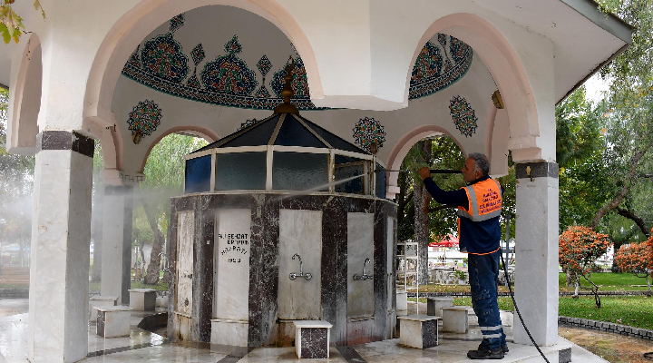 Türkiye’de ilk vakanın görüldüğü 11 Mart 2020 tarihinden itibaren toplum sağlığını korumak için gerekli bütün önlemleri alan Kuşadası Belediyesi, koronavirüse karşı normalleşme sürecinde de tedbiri elden bırakmıyor. Temizlik İşleri Müdürlüğü (TİM) ekipleri düzenli olarak Güzelçamlı Mahallesi’nden başlayarak kent genelindeki camileri çevreye zarar vermeyen güçlendirilmiş bitkisel deterjanlarla temizleyerek dezenfekte ediyor.