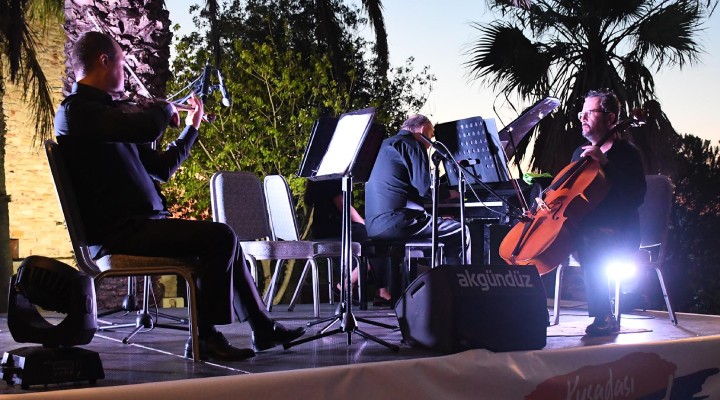 Güvercinada Kalesi’nin eşsiz günbatımı manzarası eşliğinde gerçekleşen “KUSAV Piano Quartet” isimli konserde dünyaca ünlü müzisyenler J. Haydn ile W.A Mozart’ın eserleri seslendirildi. Kemanda Ozan Dinç, piyanoda Aleksander Mekaev, viyolada Luiza Mardukhanova, viyolonselde ise Özgür Elgün’ün sahne aldığı dinletiyi çok sayıda Kuşadalı ile beraber, KUSAV Başkanı Levent Köylü ve televizyon programcısı Okan Bayülgen de dinledi.
