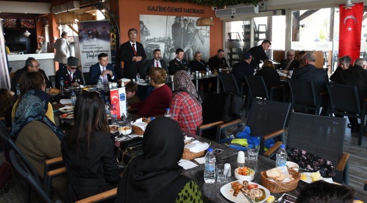 Kuşadası Belediyesi’nin Gazibeğendi Tesisleri’nde verilen öğle yemeğine Kuşadası Kaymakamı Sadettin Yücel, Kuşadası Belediye Başkan Yardımcısı Özgür Batçıoğlu, Kuşadası Cumhuriyet Başsavcısı Cem Koray Eryılmaz, İlçe Emniyet Müdür Mehmet Ali Berksoy, Türkiye Muharip Gaziler Derneği Kuşadası Şubesi üyeleri, ilçede görev yapan idari ve mülki amirler ile şehit aileleri, yakınları ve gaziler katıldı. Yemek programında konuşan Kuşadası Kaymakamı Sadettin Yücel, “Öncelikle Türkiye Cumhuriyeti’nin kurucusu Gazi Mustafa Kemal Atatürk başta olmak üzere bütün aziz şehitlerimizi saygı ve minnetle anıyor, onlara Allah’tan rahmet diliyorum. Sizler şehit ailesi olma şerefine ulaşmış, milletimizin kalbinde müstesna bir yere sahipsiniz. Bu anlamda, şehit aileleri bizim baş tacımızdır. Şehitlerimizin bizlere miras bıraktığı mukaddes vatan toprakları üzerinde yaşamanın bilinciyle onların hatıralarına saygı duyuyoruz. Allah bir daha bu millete İstiklal Marşı yazdırmasın” diye konuştu.