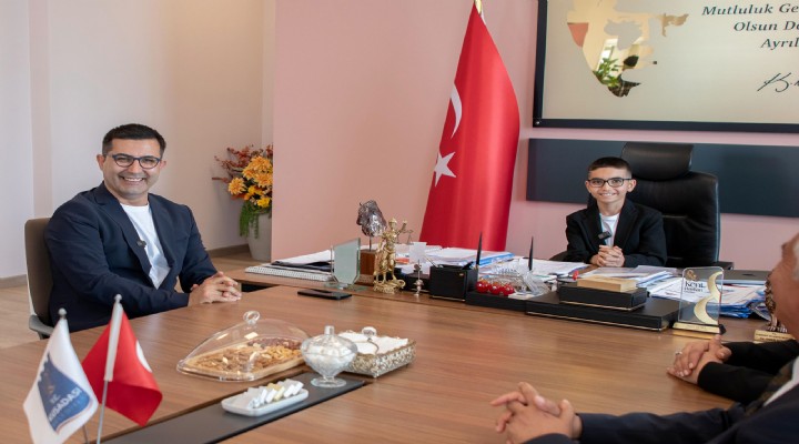 Kuşadası’nda düzenlenen 23 Nisan Ulusal Egemenlik ve Çocuk Bayramı kutlamaları kapsamında Belediye Başkanı Ömer Günel, makamını 7 Eylül İlkokulu 4 B sınıfı öğrencisi Eymen Çalışkan’a devretti. Başkan Ömer Günel’in koltuğuna oturan sembolik belediye başkanı Eymen Çalışkan, Park ve Bahçeler Müdürlüğünü arayarak Kuşadası'nda çocuklar için park ve oyun alanlarının artırılmasını istedi.