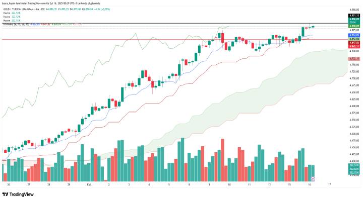 Gram altın ise dolar/TL tarafındaki yukarı yönlü hareketlilik ve ons altındaki yükselişlerin etkisiyle resmi rakamlarda 4 bin 901 liraya yükselerek rekor tazeledi. Bugün sabah seansında 08.27'te 4 bin 892 lirada bulunuyor.