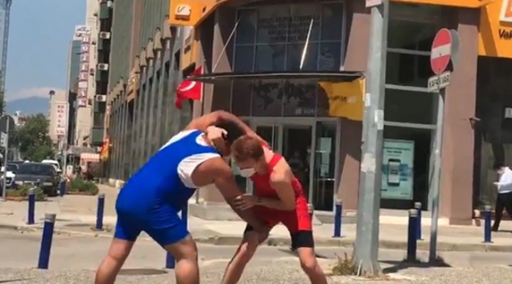 LDP İzmir İl Başkanlığı, Vakıf Bank Ege Bölge Müdürlüğü önünde ilginç bir protesto eylemi yaptı. AK Partili güreşçi Hamza Yerlikaya'nın yönetim kuruluna atandığı Vakıfbank'ın önüne gelen eylemciler, şaşkın bakışlar arasında güreş tuttu. Güreş mayosu ile bir birlerine el ense çeken iki eylemci, daha sonra ellerindeki boş CV'lerle iş başvurusu yapmak için bankaya girdi.
