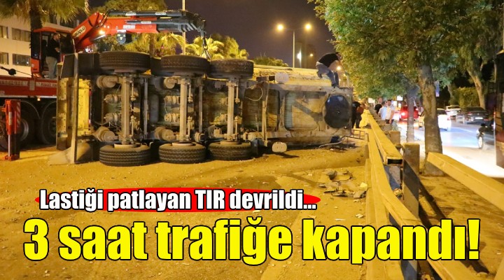 Kaza, saat 22.15 sıralarında Ankara Caddesi Konak istikameti Bayraklı mevkisinde meydana geldi. Belkahve'den Bornova'da bulunan bir firmaya çakıl götüren K.Ö. yönetimindeki 35 AJR 087 plakalı TIR, iddiaya göre 2 lastiği patlayınca kontrolden çıktı.
