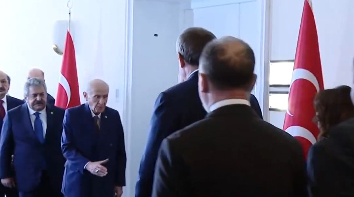 Saat 11.30'da başlayan görüşme öncesi Bahçeli, DEM Parti Eş Genel Başkanları Tuncer Bakırhan ve Tülay Hatimoğulları Oruç ile Grup Başkanvekilleri Gülistan Kılıç Koçyiğit ve Sezai Temelli’den oluşan DEM Parti heyetini kapıda karşıladı.