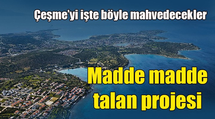 10. Çeşme yarımadasının üçte ikisi Turizm Bölgesi ve ilave olarak 11 adet turizm merkezidir. Turizm Tahsis Kanunu gereğince Cumhurbaşkanı kararı ile bu bölgenin tamamında, yani yarımadanın üçte ikisinde yabancı lehine bir tür özel mülkiyet hakkı tanınacak. Onun arazisine (yani yarımadanın üçte ikisi alana, yani ona ait ormanlarına, kıyılarına, meralarına, adalarına ve denizlerine) hiç kimse giremeyecek ve yararlanamayacaktır.
