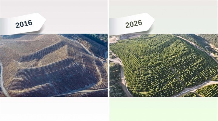 İzmir'in Dikili ilçesinde geçmişte madencilik faaliyetlerinde kullanılan arazi, orman ekiplerinin çalışması ile tekrar yeşile büründü
