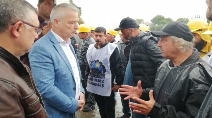 Madencilerin Ankara yürüyüşünün ikinci gününde Manisa’nın Saruhanlı İlçe Belediye Başkanı Zeki Bilgin madencileri ziyaret etti.