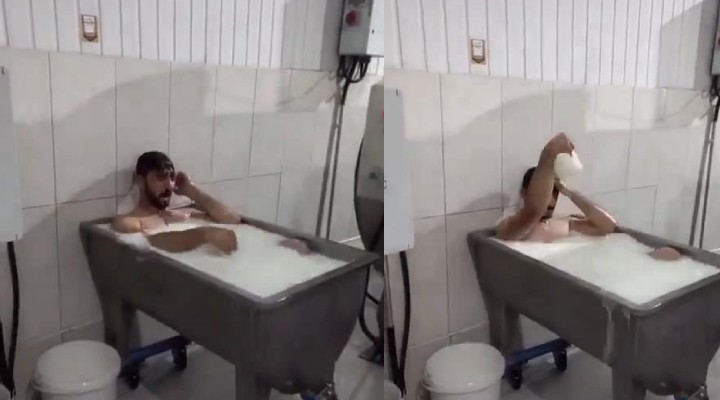 "Temizlik teknesinin içerisine girmemi istedi. Temizlediğimiz tanktan süt artığı olan sıvıyı aldık. Tekneye koyduk. 2 maşrapa kadar. Daha sonra sıcak su ekledik. Suçluluk duygusu hissettiğim için ilk başta girmek istemedim. Daha sonra kabul ettim ve 'Kıyafetlerimle mi gireyim?' diye sordum. O da 'Hayır üzerini çıkar gir' dedi. Teknenin içine girdikten sonra 1-2 dakika kadar kaldım. Daha sonra çıktım ve tekne içindeki suyu rögara tahliye ettim. Ama sosyal medya üzerinden paylaşıldığını bilmiyordum. Bizim iş yerindeki çalışanlar arasındaki WhatsApp grubuna attı. Videonun oradan yayıldığını düşünüyorum. Bu tekneyi tahliye ettik. Ticaret amaçla kullanmadık. Beraatimi istiyorum."