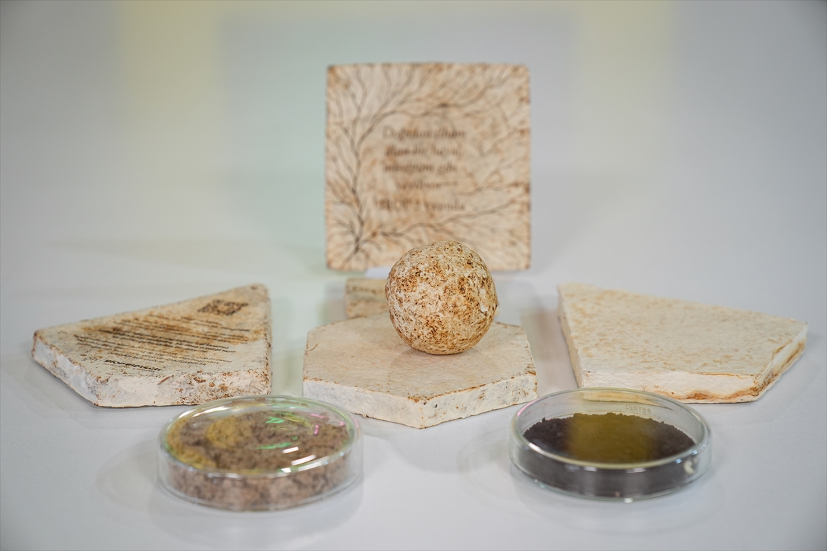 "Farklı şekillerde üretebiliyoruz. Bu üretimleri de talebe göre yapabiliyoruz. Kullanım alanları olarak dekorasyondan başladık. Paketleme kısmında, ambalaj kısmında özellikle elektronik veya kozmetik sektörüne yönelik üretimler yapabiliyoruz. Aynı zamanda kişisel hediyeler de üretebiliyoruz. Bu malzemenin en büyük artısı hiçbir şekilde çevreye zarar vermeyecek olması. Toprağa attığınızda bir ay sonra geriye hiçbir şey kalmıyor, gübre oluyor. Binalarda deprem yükü bindirmeyecek kadar hafif bir malzeme. Birçok yapı malzemesi ağırdır, taşıması zordur. Malzememizi biyolojik üretim dediğimiz bir süreçte yapıyoruz."