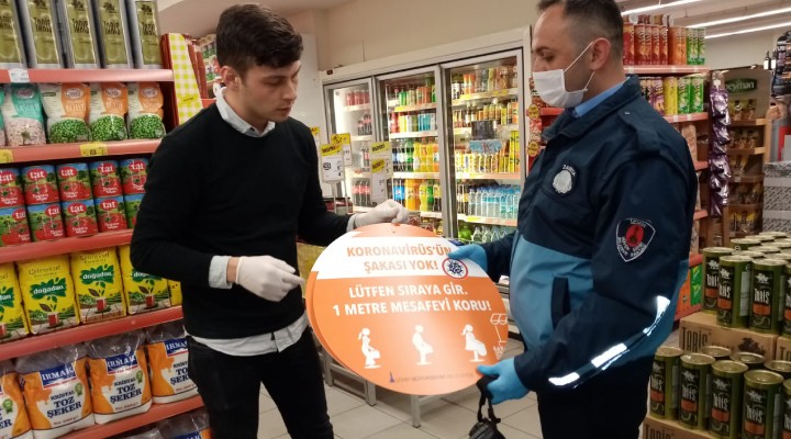 Koronavirüs salgını nedeniyle alınan önlemler ve denetimler sıklaştırılıyor. İzmir Büyükşehir Belediyesi Zabıta Dairesi Başkanlığı bu kapsamda marketlerden giriş ve çıkış noktalarında el dezenfektanı bulundurmasını, çalışanlarının ise belli aralıklarla değiştirmek kaydıyla eldiven ve maske kullanmasını istemişti. Toplamda 313 marketi bu konuda uyaran Büyükşehir Belediyesi daha sonra yapılan denetimlerde kurallara uymayan beş işletmeye yasal işlemde bulunarak, ceza verilmesi için valiliğe iletti.