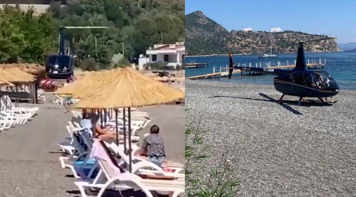 Kumlubük Koyu'ndaki 5 yıldızlı otele ait sahile, dün öğle saatlerinde Robinson R66 tipi helikopter indi. Helikopterin, sahilde güneşlenenler ve denize girenlerin şaşkın bakışları arasında plaja indiği anlar, cep telefonuyla kayda alındı, görüntüler sosyal medyada paylaşıldı.