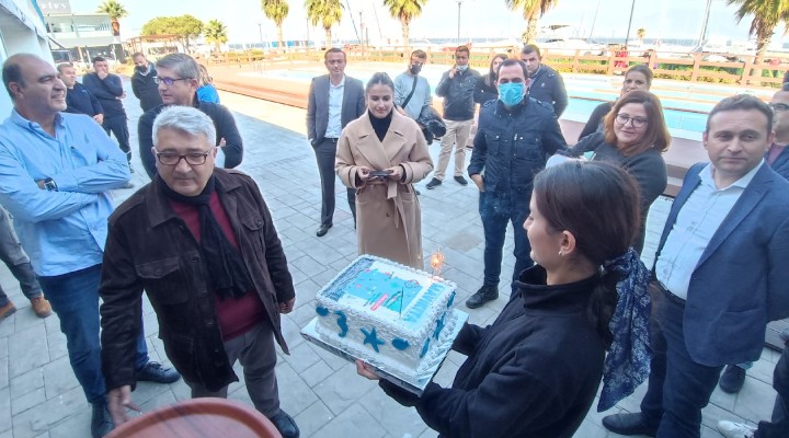 MAVİ KITA'nın basılı yayınının veda partisi İzmir Marina'da İZDENİZ YK Başkanı Hakan Erşen, İZDENİZ YK Üyesi ve Genel Müdürü Ümit Yılmaz, İZDENİZ YK Üyesi M. Ayhan Kara, İZDENİZ Genel Müdür Yrd. Gökhan Atılgan ve birim müdürleri ile personelin katılımıyla bugün yapıldı. Pastanın üzerinde MAVİ KITA'nın kapağı yer aldı.
