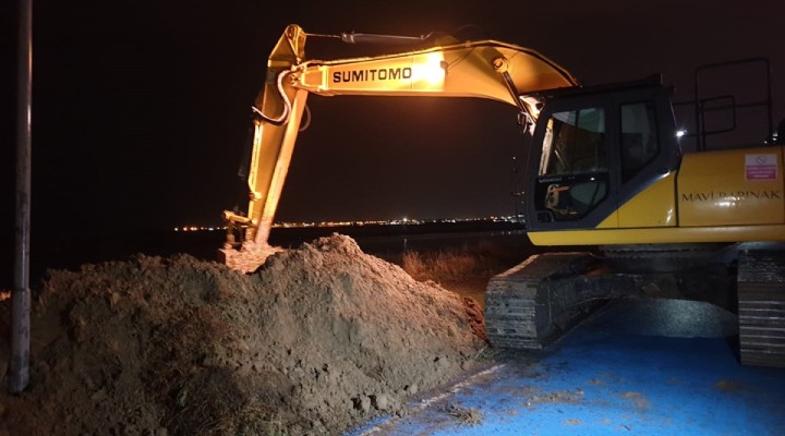 Karşıyaka Mavişehir'de denizin yeniden taşıp su baskını tehlikesi yaratmaması için İzmir Büyükşehir Belediyesi ekipleri tarafından çalışma başlatıldı. Ekipler, denizin önüne toprak set çekti.