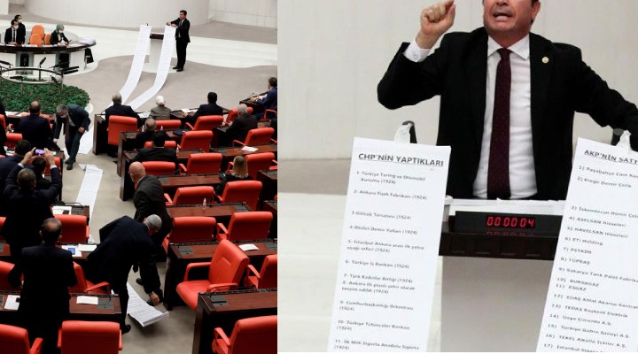 TBMM Genel Kurulunda Ticaret Bakanlığı ile Sanayi ve Teknoloji Bakanlığı ve bağlı kuruluşlarının 2021 yılı bütçelerinin görüşmelerinde CHP Trabzon Milletvekili Ahmet Kaya “CHP’nin yaptıkları, AKP'nin sattıkları” yazılı iki uzun rulo kağıdı, TBMM kürsüsünden yere serdi. Kaya ruloların bir ucunu da kürsüdeki mikrofona taktı ve “Bu listelerde CHP'nin yaptıkları 15 metre, AKP'nin sattıkları 13 metre” dedi.