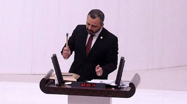 Erbay'ın avukatı mahkemeye sunduğu dilekçede, kürsüye koyduğu sünger üzerinde cep telefonunu kıran müvekkilinin, her türlü tedbiri alarak kürsünün zarar görmesini engellediğini ileri sürdü.