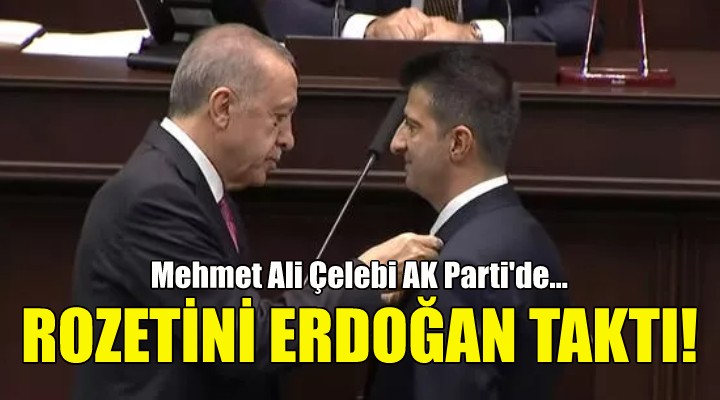 Çelebi'ye parti rozetini grup konuşması öncesinde Erdoğan taktı.