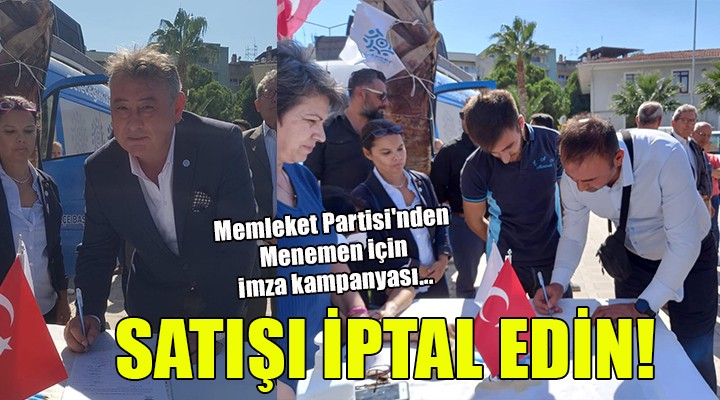 Memleket Partisi Menemen İlçe Başkanlığı tarafından satışın iptali için imza kampanyası düzenlendi. Menemen Cumhuriyet Meydanı'ndaki kampanyayı Memleket Partisi İzmir İl Başkanı Cüneyt Oğuz ile 3 dönem Menemen Belediye eski Başkanı Tahir Şahin de imzaladı.