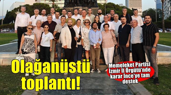 Toplantıda CHP Genel Başkanı Özgür Özel'in dün Memleket Partisi Genel Merkezi'ne yaptığı ziyaretteki davet değerlendirildi. Toplantıyla ilgili açıklama yapan Memleket Partisi İzmir İl Başkanı Cüneyt Oğuz, "Bu ziyaret Genel Başkanımız Muharrem İnce’nin, 'Bu zorlu süreçte, kişisel hırslarımızı değil ortak hayallerimizi, ortak iyileri düşünmek zorundayız; dargınlıkları bir kenara bırakıp, birliktelikleri ortak iyiyi öne çıkarmak zorundayız.' ifadesi İzmir Örgütü'nde tam destek gördü. İzmir Örgütü Genel Başkanımız Muharrem İnce'nin süreçle ilgili alacak olduğu karara oybirliği ile destek kararı aldı.' dedi.