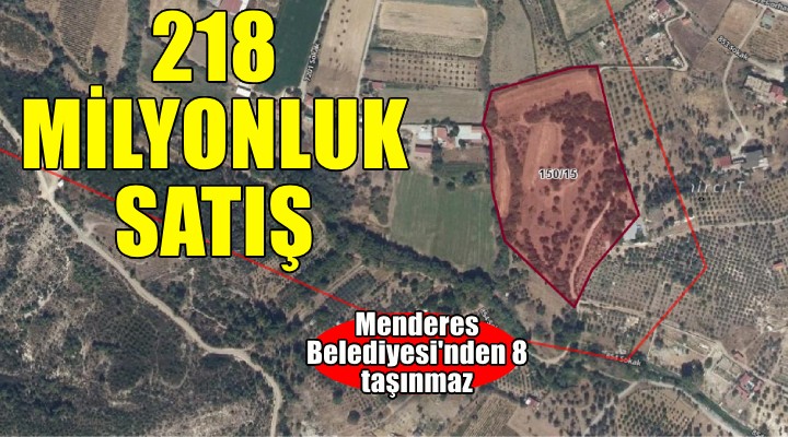 Menderes Belediyesi'nde satışlar devam ediyor. Belediye, bünyesinde bulunan 8 adet taşınmazı satışa çıkaracak. Ataköy, Orhanlı, Gümüldür, Kuyucak, Akçaköy mahallelerinde satışa çıkacak tarla nitelikli taşınmazlardan 218 milyon 623 bin TL gelir elde edilmesi bekleniyor.