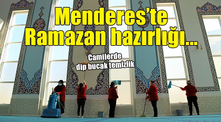 Menderes'te Ramazan Ayı öncesi camilerde köşe bucak temizlik yapıldı. Belediye ekipleri ilçedeki camileri Ramazan ayına hazır hale getirdi. Menderes Belediye Başkan V. Erkan Özkan, Ramazan'da vatandaşların temiz ve ferah ortamda ibadetlerini yerine getirmelerini amaçladıklarını belirtti.