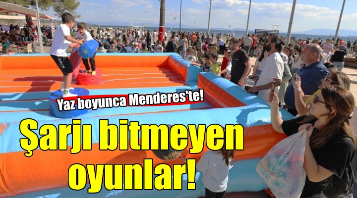 Menderes Belediyesi Kültür ve Sosyal İşler Müdürlüğü yazın sonlarına dek sürecek geleneksel çocuk oyunları şenliği düzenliyor. “Şarjı Bitmeyen Oyunlar” adı altında düzenlenecek şenlik geleneksel çocuk oyunlarını yaşatıp çocuklarla buluşturuyor.