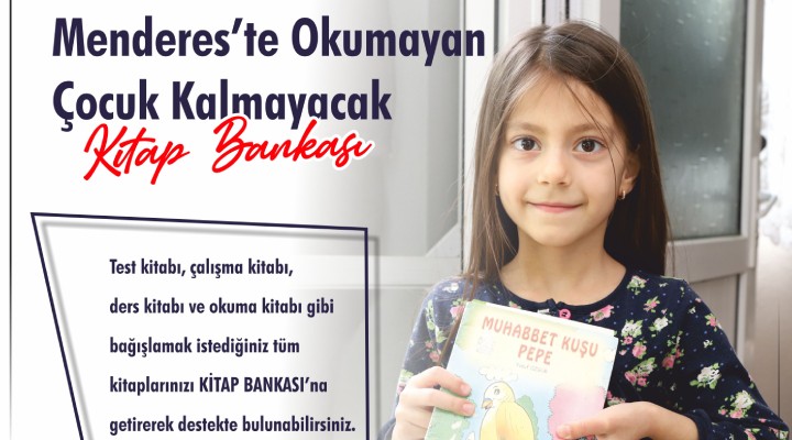 Menderes Belediyesi, Kitap Bankası projesini hayata geçirdi. Hayata geçirdikleri proje sayesinde ilçede okumayan çocuk kalmayacağını söyleyen Belediye Başkanı Mustafa Kayalar şu şekilde konuştu;