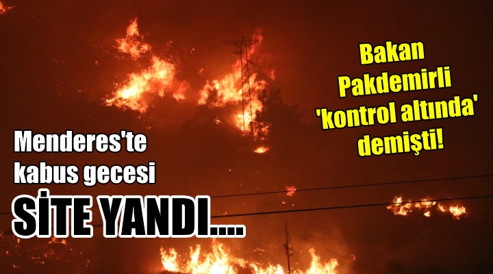 SONKALEİZMİR- İzmir'in ormanlarla kaplı cennet ilçesi Menderes, dün kabus dolu bir gece yaşadı. Öğle saatlerinde Çile Mahallesi'ndeki ormanlık alandan başlayan alevler, rüzgarın etkisiyle büyüdü. Alevler tatilciler ve yazlıkçıların yoğun olduğu Özdere'ye doğru ilerlemeye başladı. Menderes Belediye Başkanı Mustafa Kayalar da yangın yerine gelip ekiplerden bilgi aldı. Alevlerin ilerleyişi nedeniyle, önlem amacıyla Özdere İzmir Caddesi'ne yakın konumdaki Koru Sitesi'nin boşaltılması kararlaştırıldı. Gece geç saatlerde beklendiği gibi de oldu. Alevler, tahliye edilen Koru Sitesi'ne kadar ulaştı. Sitede bulunan 79 hane ekiplerce tamamen boşaltılmıştı. Yangın nedeniyle sitede büyük hasar oluştu.