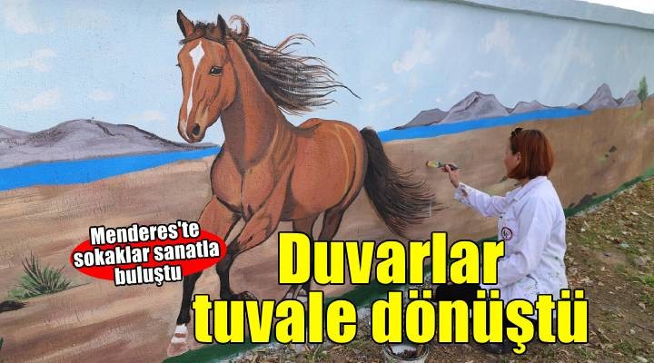 Menderes Belediyesi, Akçaköy’de duvarları sanatsal resimlerle donattı. Belediyenin Park ve Bahçeler Müdürlüğü’ne bağlı sanatçı Nazmiye Dikmen Şen, duvarları bir tuval gibi kullanarak çizimler gerçekleştirdi. Akçaköy Mahallesi’nde sokaklar rengarenk oldu. Görenler hayranlıklarını dile getirdi.