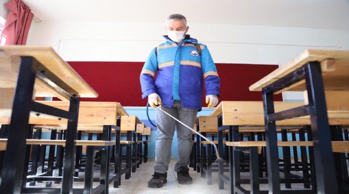 Pazartesi günü kademeli olarak başlayacak eğitim-öğretim yılının ikinci yarısı öncesi Menderes Belediyesi tarafından okullarda dezenfeksiyon çalışması yapıldı. Menderes Belediyesi Temizlik İşleri Müdürlüğü’ne bağlı ilaçlama ekibi tarafından o kulların iç ve dış tüm alanlarında ilaçlama çalışması yapıldı.