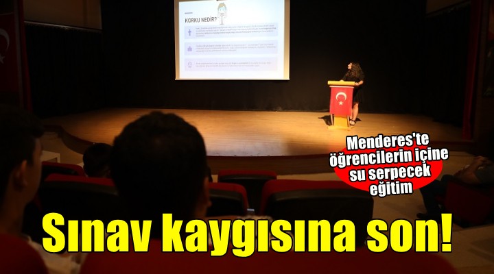 Menderes Belediyesi, Liselere Giriş Sınavı öncesi öğrencilere ‘’LGS’de Sınav Kaygısı ve Stres Yönetimi’’ adlı eğitim gerçekleştirdi. Eğitimde öğrenci ve veliler için süreçte yaşanan kaygı ve stres ile mücadele etmenin incelikleri anlatıldı. Menderes Belediyesi Kültür ve Sosyal İşler Müdürlüğü’nün bünyesinde yer alan Psikolog Almina Kahraman’ın verdiği eğitimle sınav süreci yönetiminde stres ve kaygıları gidermenin yolları, uyku ve beslenme düzeninin önemi ve niteliği, rutinler, hazırlıklar, günlük yaşam planlaması ile sınav günü ve sınav sırasında yapılması gerekenler hakkında katılımcılar bilinçlendirildi.