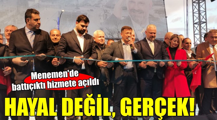 "Menemen'in trafik probleminin en önemli nedenlerinden olan battıçıktının olmayışı bu bölgede ciddi kazalara da neden oluyordu. Bugün battıçıktıyı yapmak da açmak da bize nasip oldu. Bu proje için yola çıktığımızda 'Yapamazsınız' diyenler oldu. 'Bu büyükşehirin, karayollarının görevi' dediler. Bizi hayalperest olmakla, hayal kurmakla suçladılar. Her şey hayal etmekle başlıyor. Bizim ayakları yere basan hayallerimiz var. Başkalarının hayal kuramadıkları her şeyi bir bir hayata geçiriyoruz. Battıçıktı hayallerimizden sadece biriydi. Bugün bunu gerçekleştirmiş olmanın gururunu yaşıyoruz. Tüm hayallerimiz güzel Menemenimiz için. Günde 60 bine yakın aracın kesintisiz geçeceği battıçıktıya cumhuriyetin 100. yılı dolayısıyla 100. Yıl Köprülü Kavşağı adını verdik. Her türlü iftiraya çalışarak yanıt verdik. Takdiri de siz hemşehrilerimize bıraktık. Ben sizim adalet terazinize güveniyorum. Çünkü bizim bağımız oy bağı değil, gönül bağıdır."