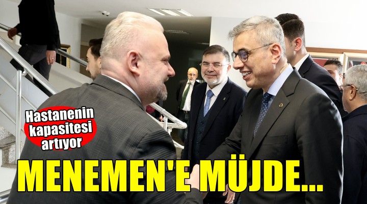 "Menemen’e Büyük Müjde! Bugün, Sağlık Bakanımızla AK Parti İzmir İl Başkanlığımızda yaptığımız görüşmede, Menemen’imizin sağlık geleceğini güçlendirecek önemli bir adım daha attık. İlçemiz için müjde niteliğindeki bu gelişmeyle yeni devlet hastanemizin yatak kapasitesi 400’e çıkarılıyor!