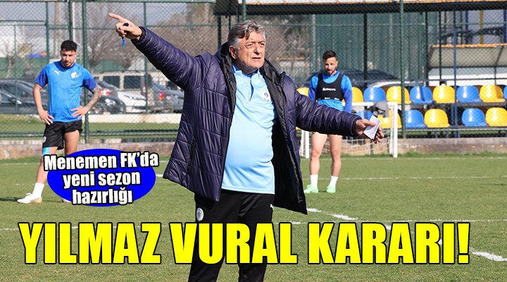 Geçen sezon ligin 12'nci haftasında dümene geçen tecrübeli teknik adamın sözleşmesi devam ederken, yönetimin Vural'ı bırakmayacağı kaydedildi. Yeni sezonda direkt şampiyonluğa oynayacak bir kadro kurması beklenen sarı-lacivertlilerde, Yılmaz Vural'ın bu hafta Başkan Bilgin Tokul ile görüşerek transfer raporunu vereceği belirtildi. Türkiye'nin en çok takım çalıştıran teknik adamı olan 71 yaşındaki Yılmaz Vural, kariyerinde ilk kez Menemen FK'da 2'nci Lig'de görev almıştı