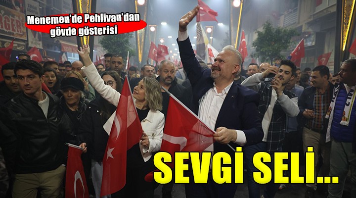 31 Mart yerel seçimlerine çok kısa bir süre kala, Menemen Belediye Başkanı Aydın Pehlivan, kendisini destekleyen binlerce vatandaşla birlikte, kentte adeta bir gövde gösterisi gerçekleştirdi. Menemen Stadı önünden başlayan kortej yürüyüşü sloganlar, marşlar, havai fişekler ve meşalelerle renklendi. Başkan Pehlivan'a yürüyüş güzergahı boyunca evlerinin balkon ve pencerelerine çıkan hemşehrileri de büyük destek verdi.