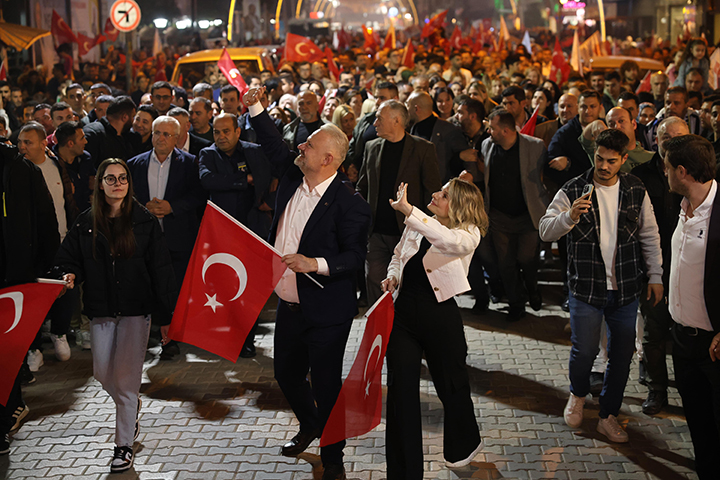 On bini aşkın vatandaşın katılımıyla ve büyük bir coşkuyla gerçekleştirilen yürüyüşün sonunda, hafta içi gece geç saat olmasına rağmen Cumhuriyet Meydanı'nı hıncahınç dolduran hemşehrilerine seslenen Başkan Pehlivan, “Size bakınca, kararlarını tek ve hür veren ama bir orman gibi kardeşçesine birleşen, Menemen’de umutları yeşerten bir insan seli görüyorum, inanmışlık seli görüyorum, bir gurur seli ve bir sevda görüyorum! Pazar günü destan yazmaya hazır mıyız?” ifadelerini kullandı.
